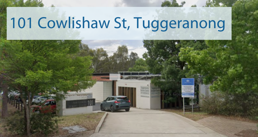 101 Cowlishaw St, Greenway (our room is inside the 55Plus Club – all ages welcome!)